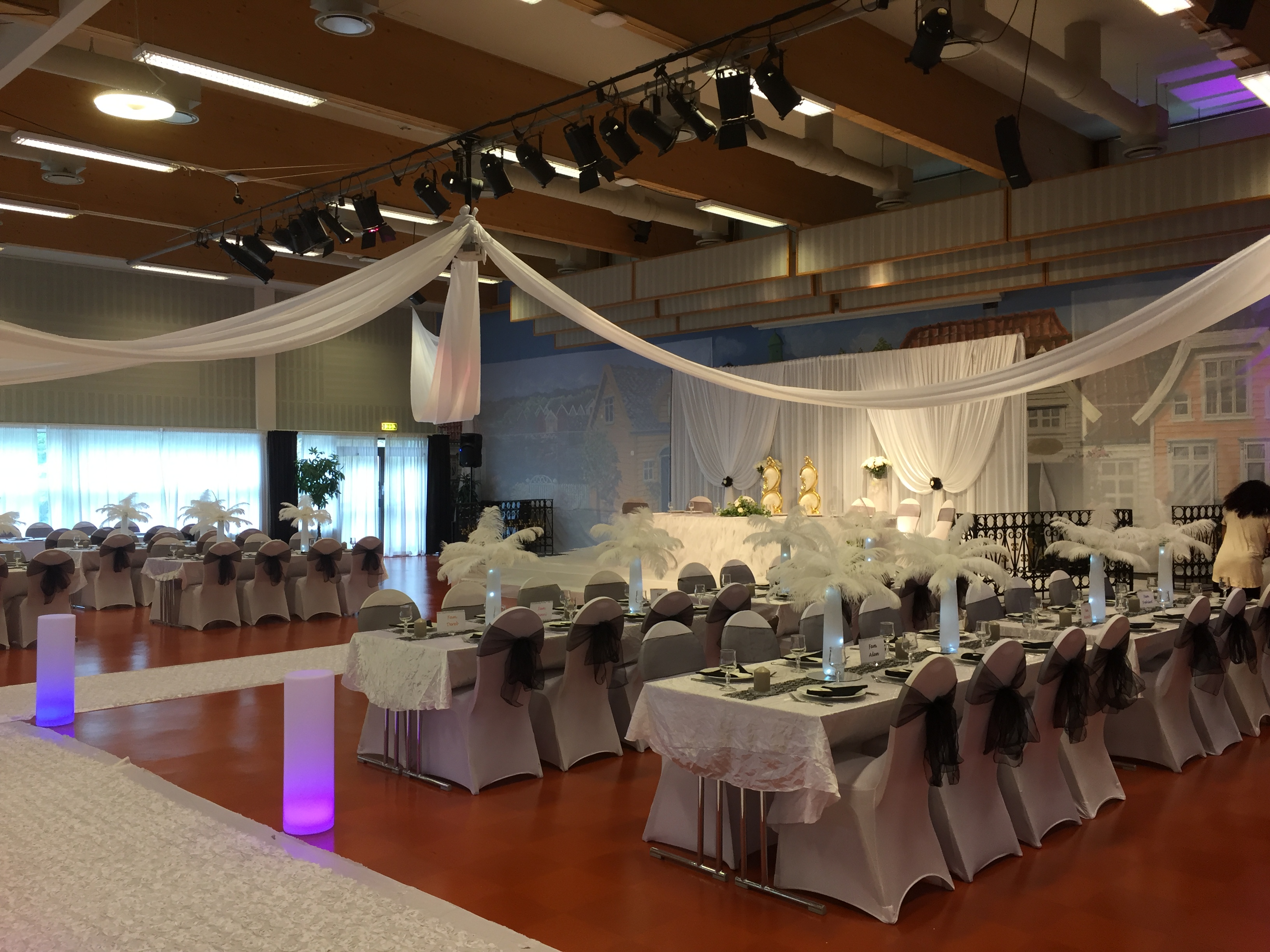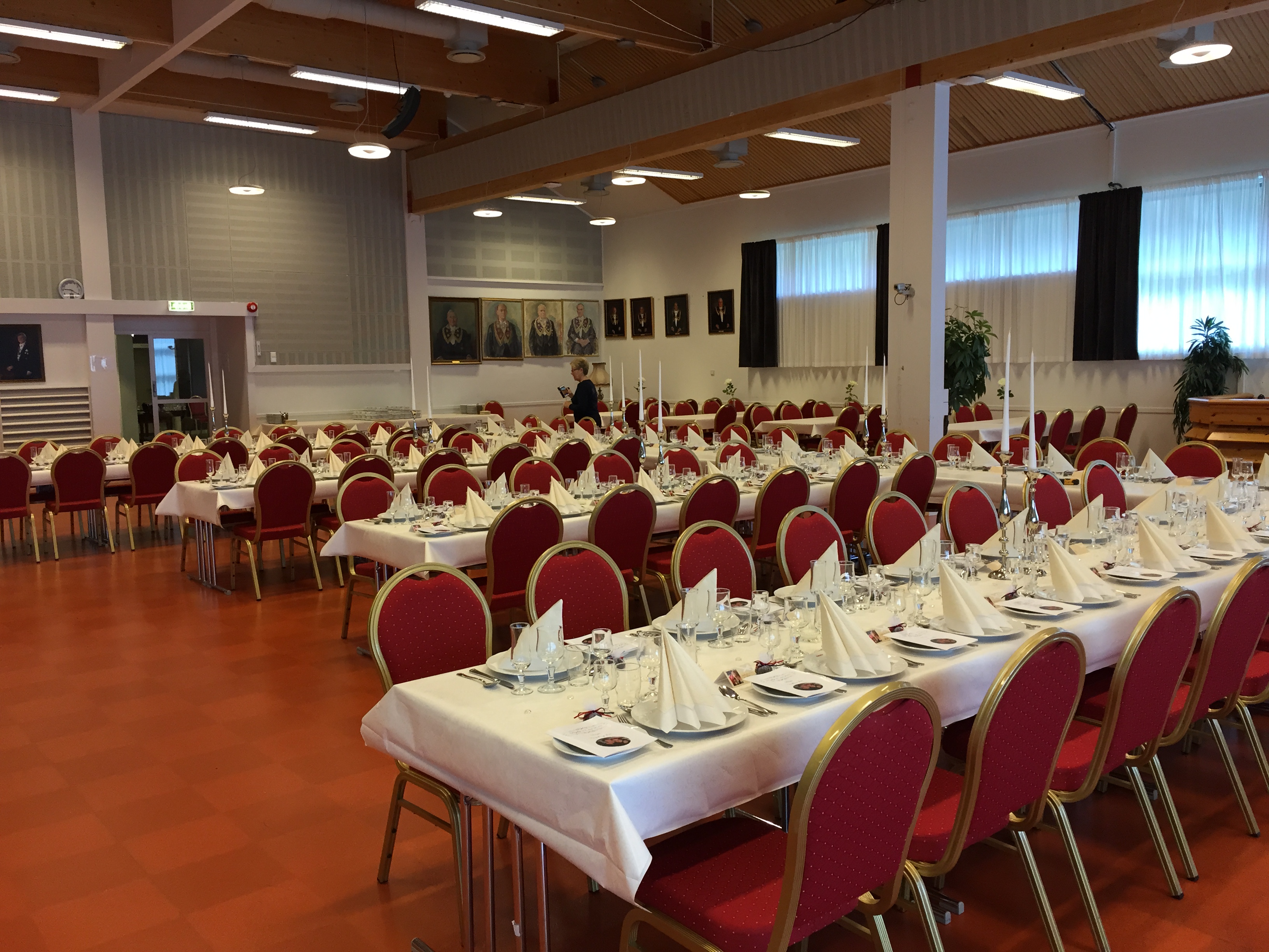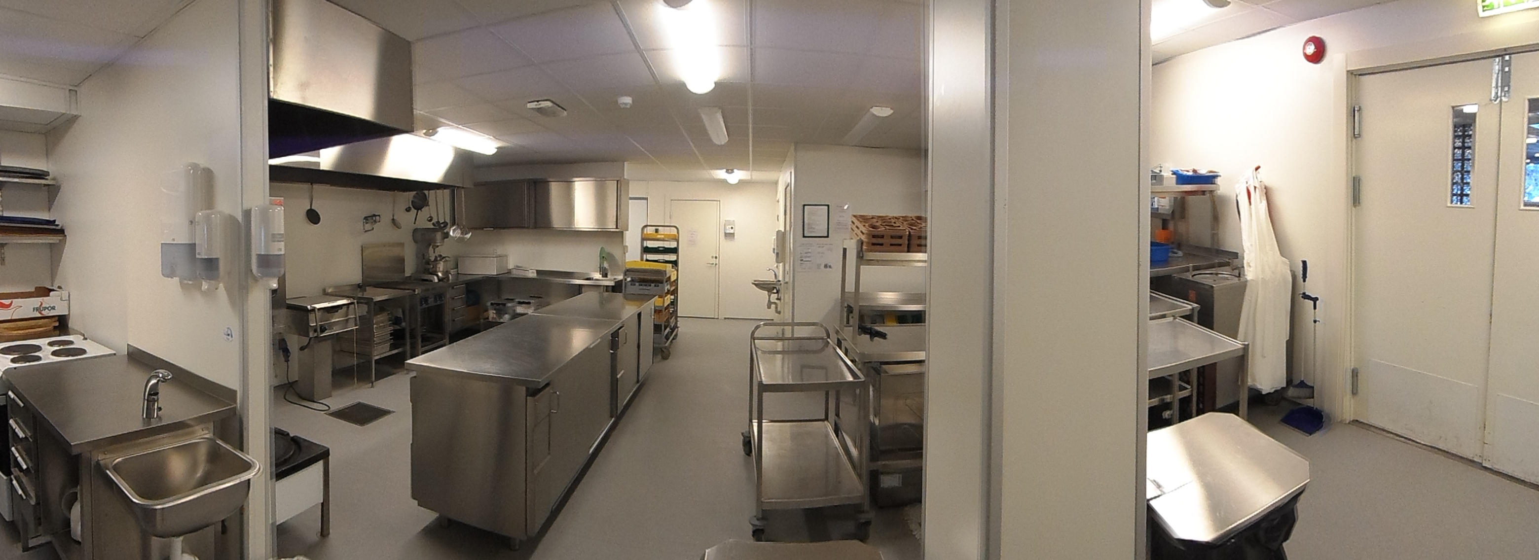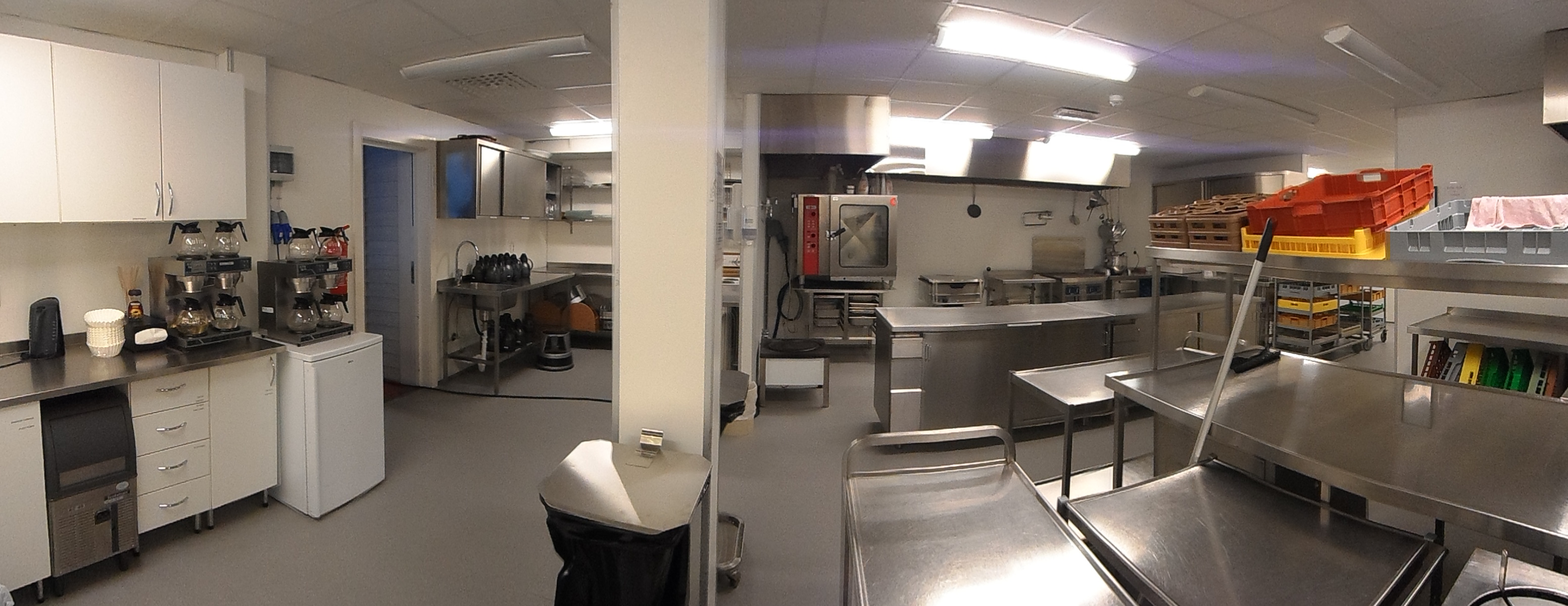 Godt utstyrt kjøkken, med komplett dekketøy til ca. 250 personer.